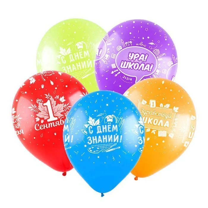 Набор воздушных шаров «С днем знаний» содержит 4 разных дизайна с 5ти сторонней печатью.