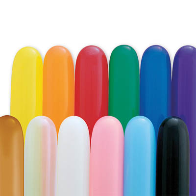 Шар из натурального латекса в виде длинной колбаски. Ассорти цветов Pink, Pale Blue, White, Onyx Black, Quartz Purple, Sapphire Blue, Emerald Green, Ruby Red, Citrine Yellow, Mandarine Orange, Diamond Clear, Mocha Brown. Используется для конструирования различных фигурок и композиций. Применяется в оформлении и розничной торговле. Надувать только воздухом с помощью насоса.