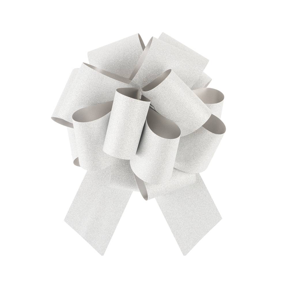 - Бант Серебро глиттер с блестками 21 см/ 661060