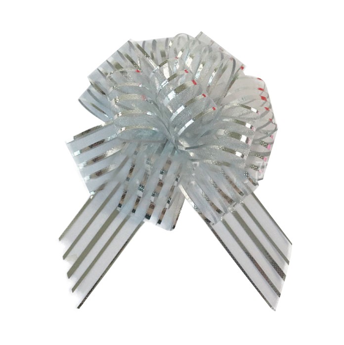Востребованность подарочных бантов вызвана простотой сборки - нужно всего лишь одной рукой зафиксировать ленточку-бант за место последней спайки и второй рукой потянуть ленточки внутри банта - соберется красивый подарочный бант. Второй плюс этого вида бантов - достаточно низкая цена.