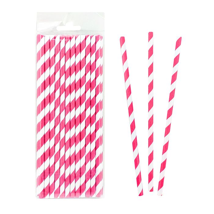 Трубочки для коктейля бумажные "Полоски" Фуксия используются для оформления напитков при праздничной сервировке стола. Бумажные трубочки являются стильным дополнением при оформлении коктейлей и кэнди-бара в целом.
