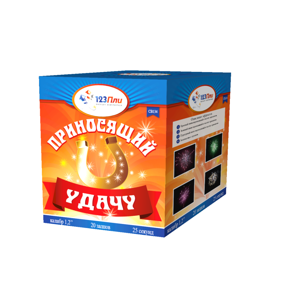 Эффекты этого удачливого фейерверка - красный, пурпурный и зеленый пион, переходящие в тысячу хризантем, золотая ива.