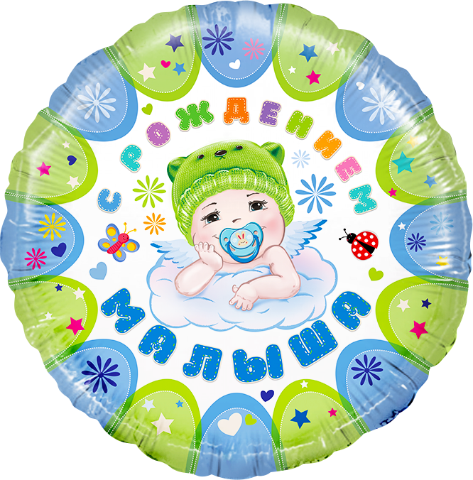 18" Круг С рождением малыша, голубой/ Китай 13216