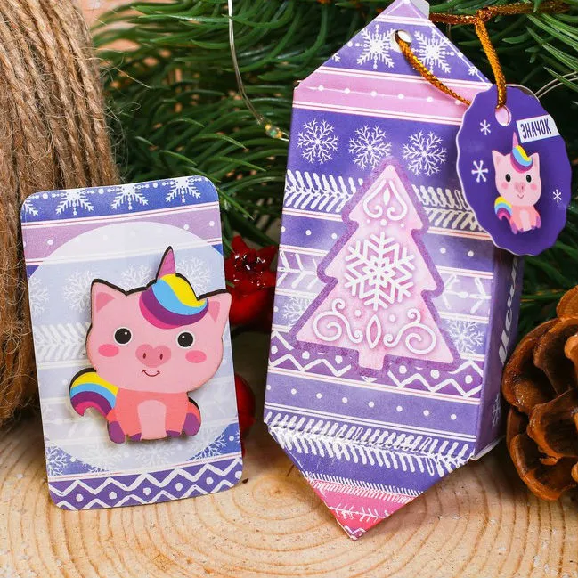 Новогодний значок "Свинка-Единорог" 3392257