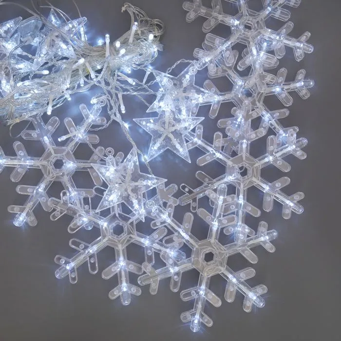 - Бахрома со снежинками 138 ламп, 3 м. БЕЛАЯ / ч31643