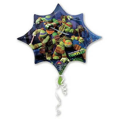 Шар в форме 8-конечной звезды, где сквозь темноту ночи прорываются Черепашки-Ниндзя! Шар продается НЕНАДУТЫМ. Рекомендуем надувать е го гелием. Шар выполнен из миларовой пленки, что позволяет ему не сдуваться от 1 недели до месяца. Размер шара: 88см х 73см.