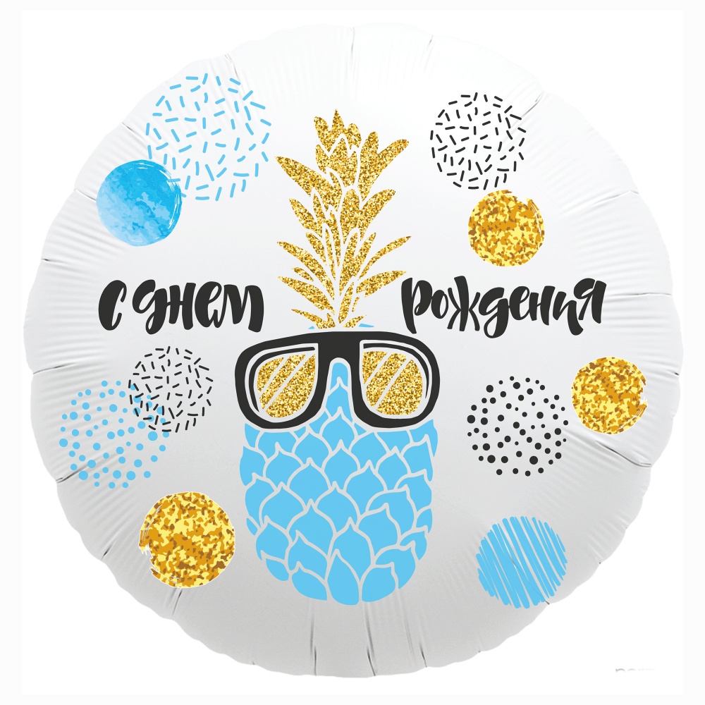 18" Круг, С днем Рождения (ананас), белый (Россия) /751909