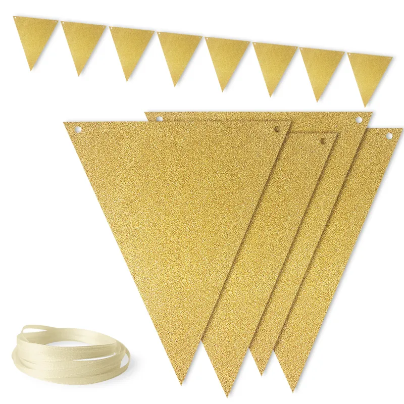 Гирлянда флажки золото с блестками 300 см./6245511
