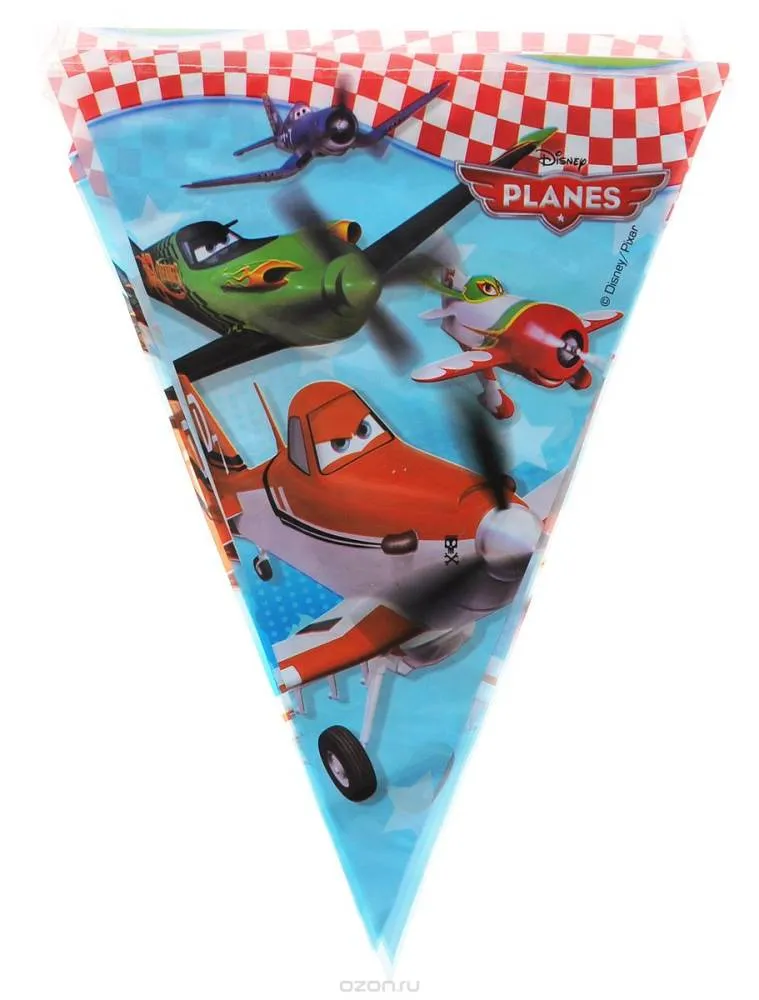 Гирлянда-вымпел Procos "Самолеты" выполнена из пластика и украшена изображениями героев мультфильма "Самолеты". Гирлянда скрепляется с помощью пластиковой ленты, прошитой нитью.