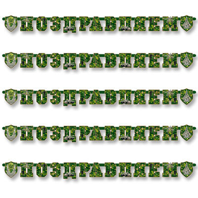 Гирлянда - буквы "Поздравляем Камуфляж" 200см
