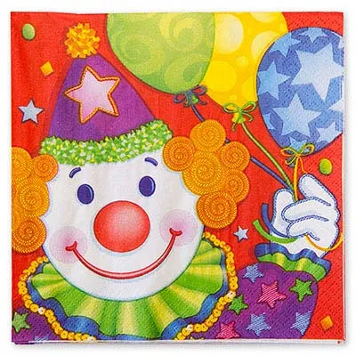 Бумажные салфетки с веселым клоуном и разноцветными шариками! Создайте яркое настроение праздника себе и своим друзьям!