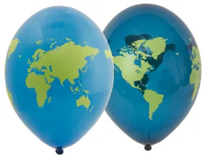 Высококачественный шар из натурального латекса. Одного типа - пастель. Шары с пятисторонним - круговая печать, шелкографическим рисунком в виде Земного шара. Предназначен для розничной продажи воздушных шариков. Воздушные шары изготавливаются из экологически безопасного 100%-ного натурального латекса. В окружающей среде разлагаются на безопасные компоненты примерно с той-же скоростью, как обычные листья деревьев. После использования лопнуть и утилизировать как бытовой отход.