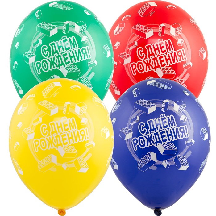 Высококачественный шар из натурального латекса. Ассорти из 6 цветов в случайном соотношении), одного типа - пастель - матовый оттенок цвета. Шары с пятисторонним - круговая печать, шелкографическим рисунком на тему "День Рождения", "Конструктор", "Кубики". Предназначен для розничной продажи воздушных шариков. Идеальный ассортимент для праздничных оформлений, т.к. при плетении из него гирлянд - рисунок будет очень хорошо виден.