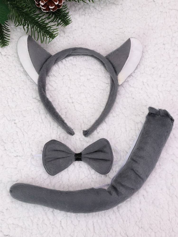 В набор входит черный ободок с ярким красным бантиком, бабочка, хвост с удобным креплением на резинке.