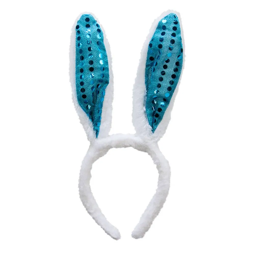 Ободок "Зайка" с пайетками, белый/голубой /6230785