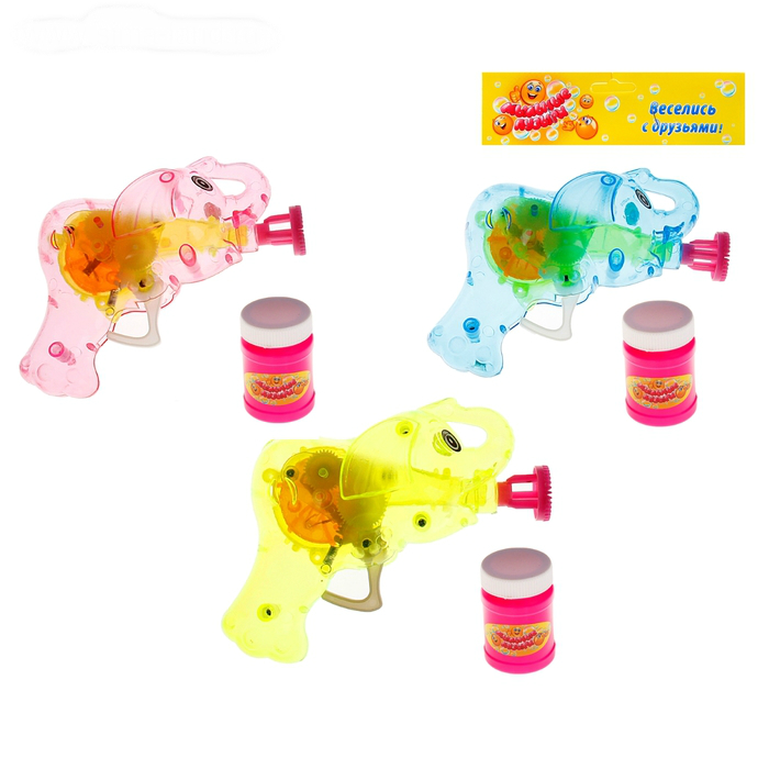 В набор входят: флакон с мыльным раствором, насадка и пистолет в виде слоника, с помощью которого ребенок будет пускать волшебные пузырьки. Также пистолет может использоваться в сюжетно-ролевых играх, в которых малыш будет представлять себя смелым полицейским или супергероем! А как эффектно пистолет светится в темноте!