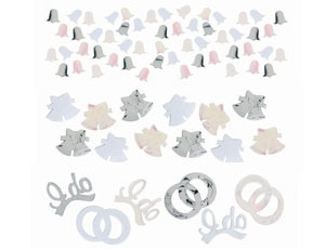 Белоснежные конфетти для тех, кто решил обвенчаться, представлено в трех дизайнах: серебряные, белые и перламутровые одинарные колокольчики; белые и серебряные двойные колокольчики с бантами; обручальные кольца и надпись I do (#Согласна/Согласен#). Конфетти можно рассыпать над головами проходящих молодоженов, положить в конверт с признанием в любви, добавить в подарок или в воздушный шарик. Вес упаковки: 34 гр.
