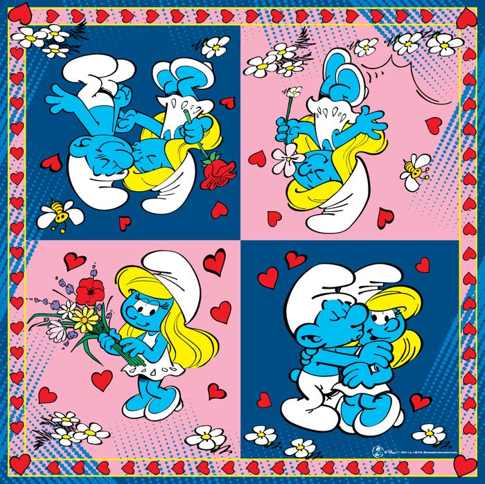 На празднике или пикнике со Смурфиками вкусный торт и сладости обязательны. А оставаться чистыми и аккуратными помогут салфетки. Многослойный и мягкие, они хорошо впитывают и на столе смотрится очень симпатично.
