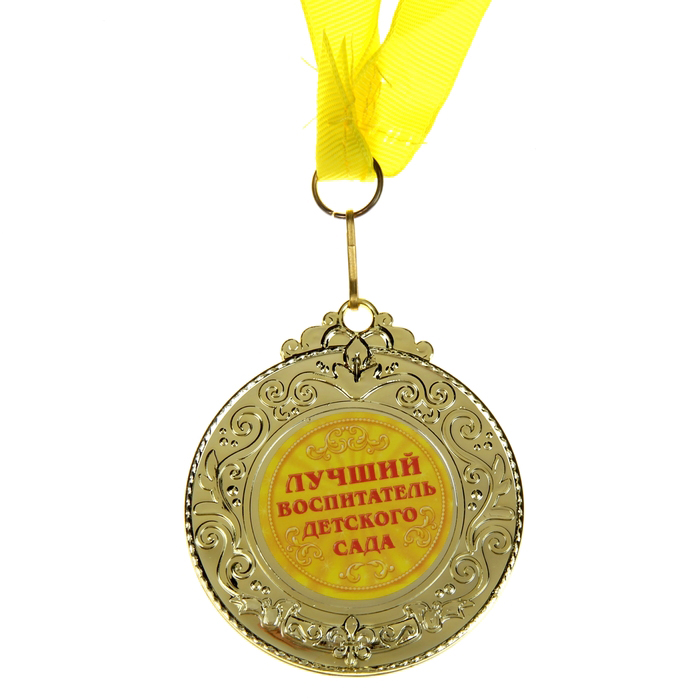 Медаль изготовлена из легкого пластика золотистого цвета, декорирована цветной бумажной вставкой с праздничным званием. Награда упакована на подарочную подложку, идет в комплекте с лентой. Яркая деталь Вашего поздравления!