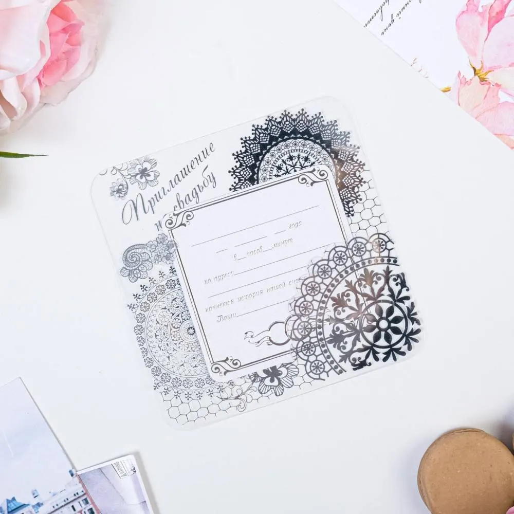 Мы продумали за вас все детали, вам остаётся только заполнить необходимые строки и раздать приглашения гостям!
