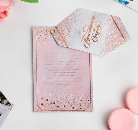 Пригласительные изготовлены из дизайнерской бумаги и картона.