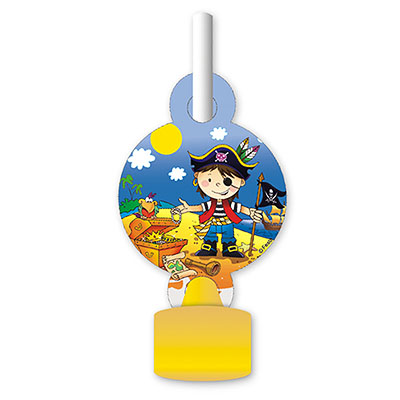 Язычки-гудки разворачиваются при надувании, издавая свистящий звук. Каждый язычок украшен картинкой с юным пиратом и говорящей птицей! В упаковке 6 штук.