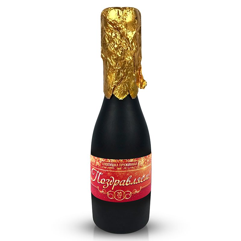 Хлопушка «Шампанское. Поздравляем!» в удобном компактном размере 20 см - оригинальный способ поздравить участников торжества на любом мероприятии! Фееричный, эффектный залп с фонтаном разноцветного серпантина из бутылки шампанского высотой 2 м станет удивительным сюрпризом для всех гостей, а также отличным дополнением к любому подарку!
