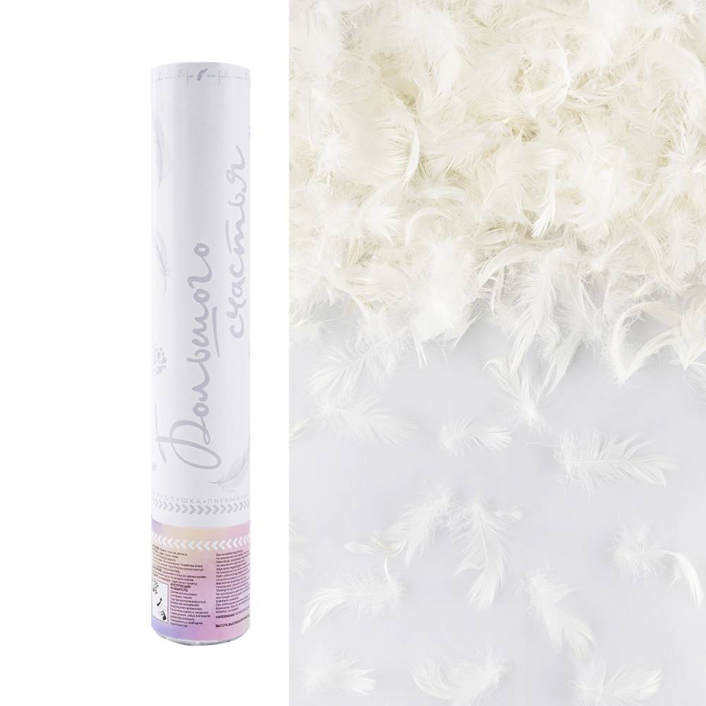 - Пневмохлопушка 30 см. "Большого счастья" перья белые / 823184