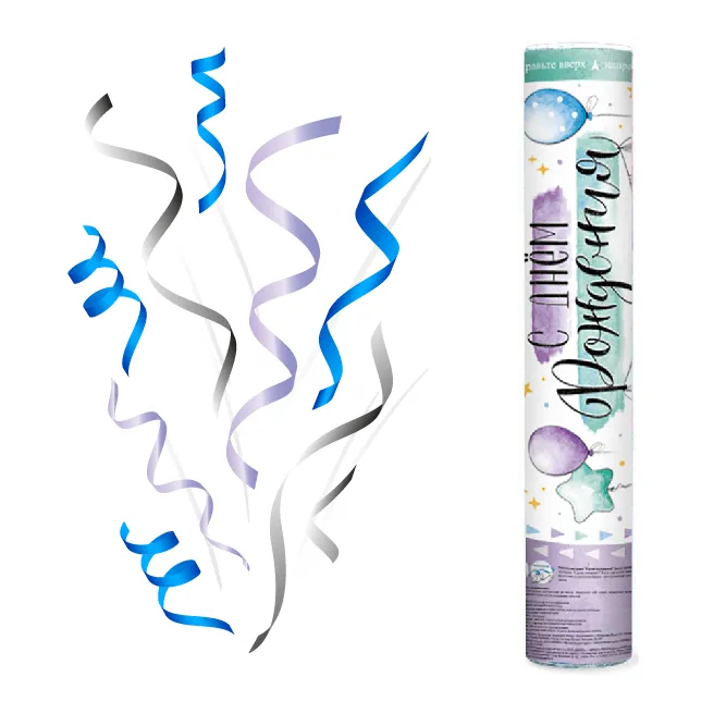 - Пневмохлопушка 30 см "С днем рождения!" Блеск серпантин (8230НВ-Р)
