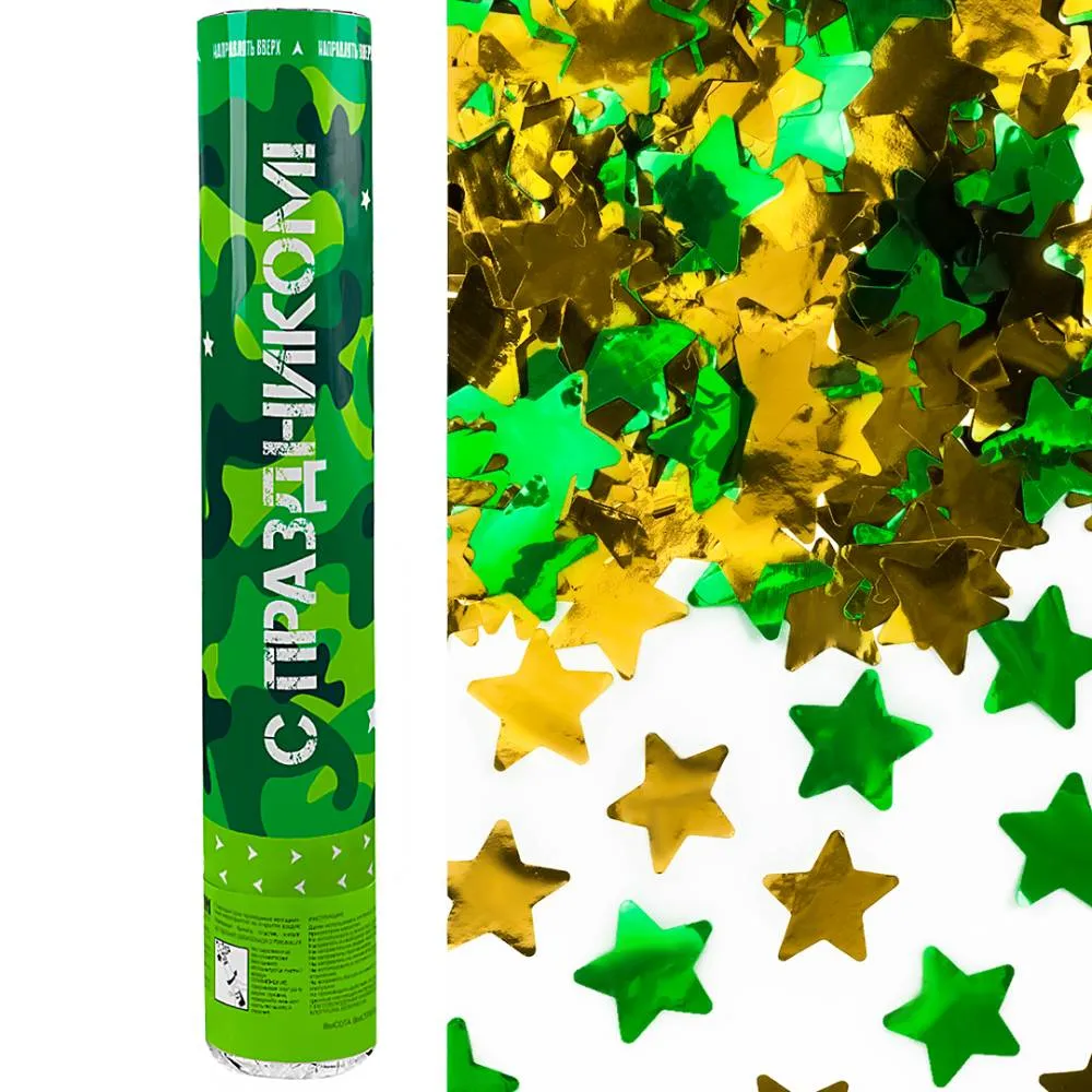 Пневмохлопушка 30 см. "С Праздником" металлик Звезды зеленый/золото / 823187