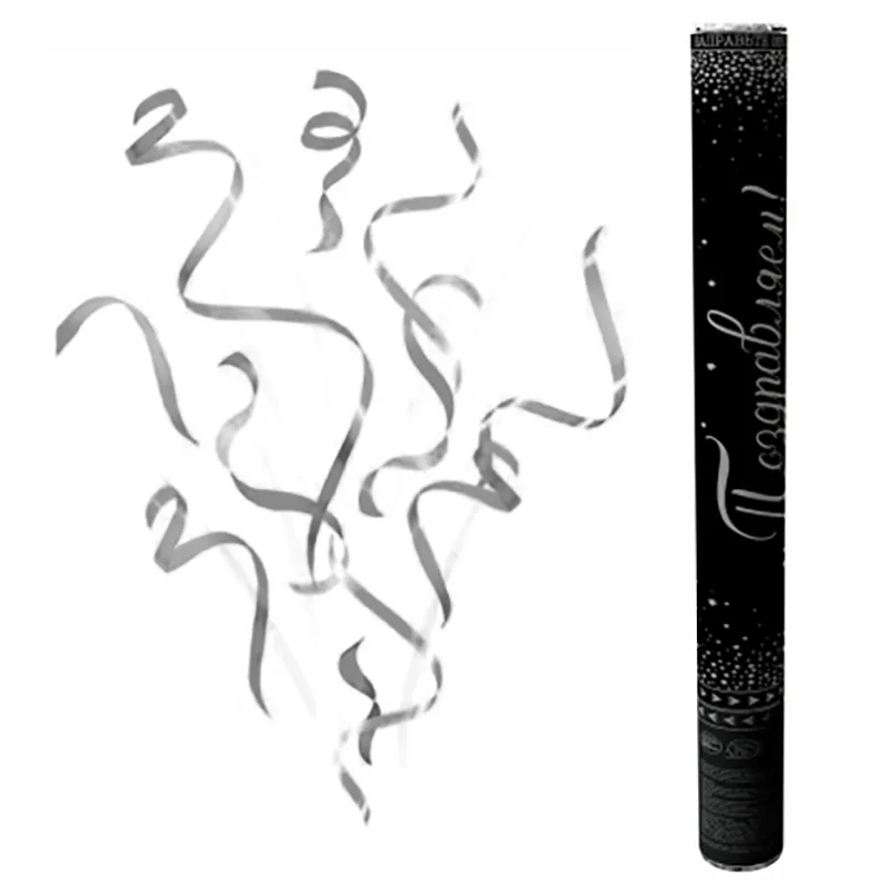 Пневмохлопушка 50 см. "Поздравляем" Серпантин серебряный / 8850-PS
