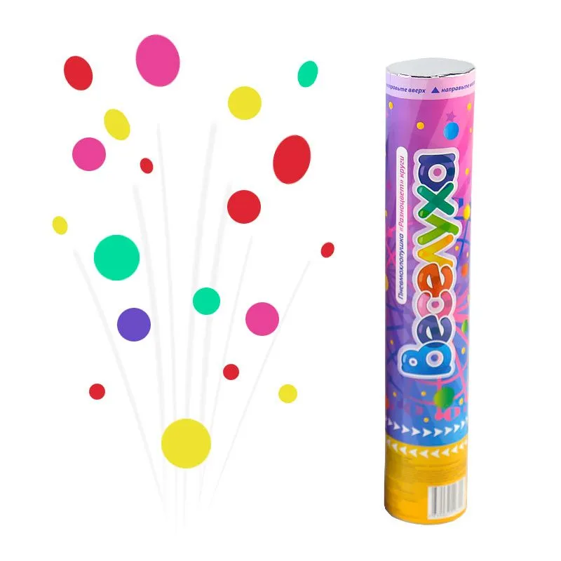 Эта хлопушка украсит любое торжество – свадьбу, юбилей, корпоративный или детский праздник. Фонтан из разноцветных фольгированных конфетти высотой 7-8 метров поможет придать празднику сказочную атмосферу.
