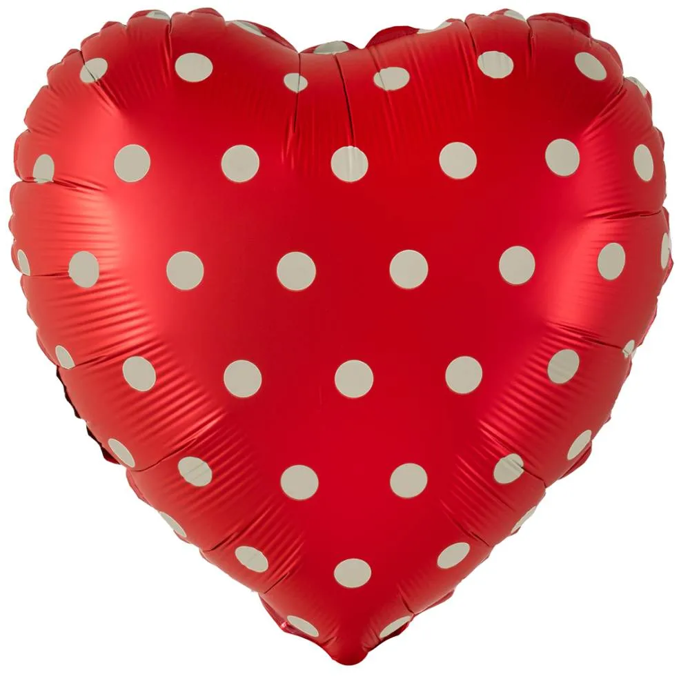 18" Сердце, Горошек, красный сатин (Китай) / 27480
