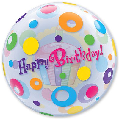 Яркие точки-круги и кекс со свечкой! С днем рождения, тебя!!! Прозрачный шар из эластичного пластика похож на мыльный пузырек, и Вы сможете видеть то, что происходит на оборотной стороне шара. Для надува используется только гелий. Правильно надутый шар летает 2-4 недели. Размер шара: 56 см. Шар продается ненадутым.