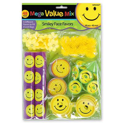 Солнечный комплект маленьких подарков и призов для конкурсов. В него входят 6 видов различных игрушек (по 8 штук каждого вида): игра- лабиринт, волчок, игольчатый мячик-ежик, очки на мягкой ленте, калейдоскоп, колечки с цветком. Отличное решение стильных подарков для вечеринки. Также большая часть набора подходит для наполнения пиньяты.