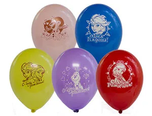Высококачественный шар из натурального латекса. Ассорти из 10-12 цветов, типа пастель. Шары с двусторонним шелкографическим рисунком. Идеальный ассортимент для розничной продажи воздушных шариков.