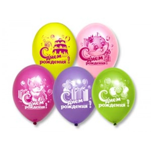Высококачественный шар из натурального латекса. Ассорти из 10-12 цветов, типа пастель. Шары с двусторонним шелкографическим рисунком. Идеальный ассортимент для розничной продажи воздушных шариков.