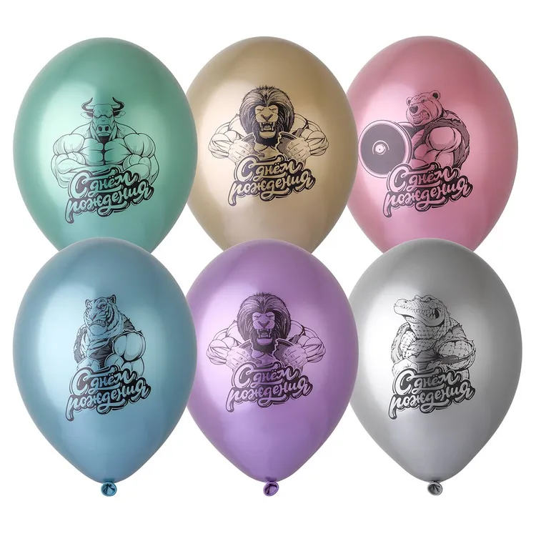 Высококачественный шар из натурального латекса. Ассорти из 10-12 цветов, типа пастель. Шары с двусторонним шелкографическим рисунком. Идеальный ассортимент для розничной продажи воздушных шариков.