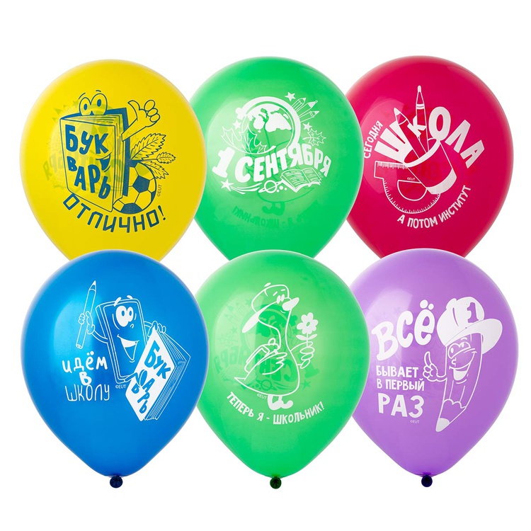 Шары из натурального латекса c шелкографическим рисунком одного цвета. Печать с четырех сторон. А пакете три разных дизайна: С Днем Рождения - Торт, Свечи, Сладости. С Днем Рождения - Свечи. С Днем Рождения - Цветы. Тип шара пастель - матовый оттенок цвета. Ассорти из 8-10 цветов. Предназначенны для использования в розничной продаже как в надутом, так и в не надутом виде.