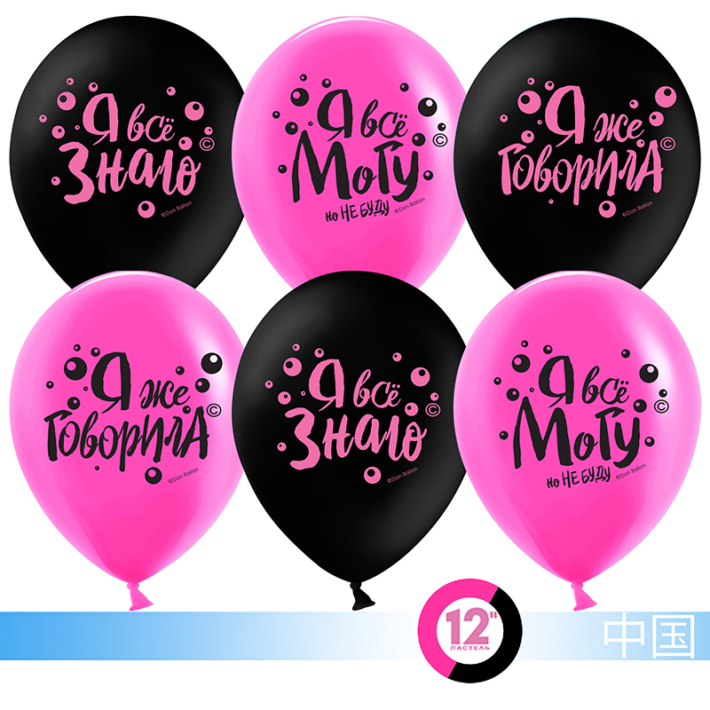 Высококачественный шар из натурального латекса, китайского производства, два цвета: Черный/Фуше; одного типа - пастель (матовый оттенок цвета). Шары с двусторонним шелкографическим рисунком. Идеальный ассортимент для розничной продажи воздушных шаров и украшения праздника.