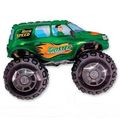 Фольгированный шарик из фольги фигурный Внедорожник зеленый. Шар из фольги подходит для надутия воздухом на палочку и под гелий.