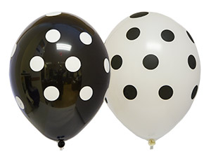 Черные шары в белый горох и белые - в черный горох. Настоящая классика, вне времени и моды. Шары матовые, с многосторонним шелкографическим рисунком. Размер шаров в надуве: 35 см. Они подходят как для надува воздухом, так и заполнения гелием.