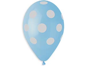 Шары из натурального латекса c шелкографическим рисунком белого цвета в виде крупных горошин, расположенным по всему шару. В пакете все шары одного цвета #72-нежно-голубой. Тип шара павстель - матовый оттенок цвета. Предназначенны для использования в розничной продаже как в надутом, так и в не надутом виде и в тематических оформлениях.