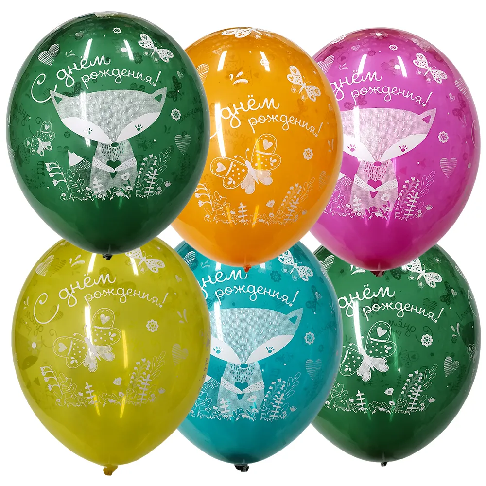 Высококачественный шар из натурального латекса, прозрачный кристалл. Шары с пятисторонним - круговая печать, шелкографическим рисунком - С Днем Рождения. Лиса. Идеально будет смотреться в букете с фольгированным шаром 1202-2809 К 18" РУС ДР Лиса. Предназначен для розничной продажи воздушных шариков. Идеальный ассортимент для оформлений, т.к. при плетении из него гирлянд - рисунок будет очень хорошо виден. Ассорти ярких цветов.