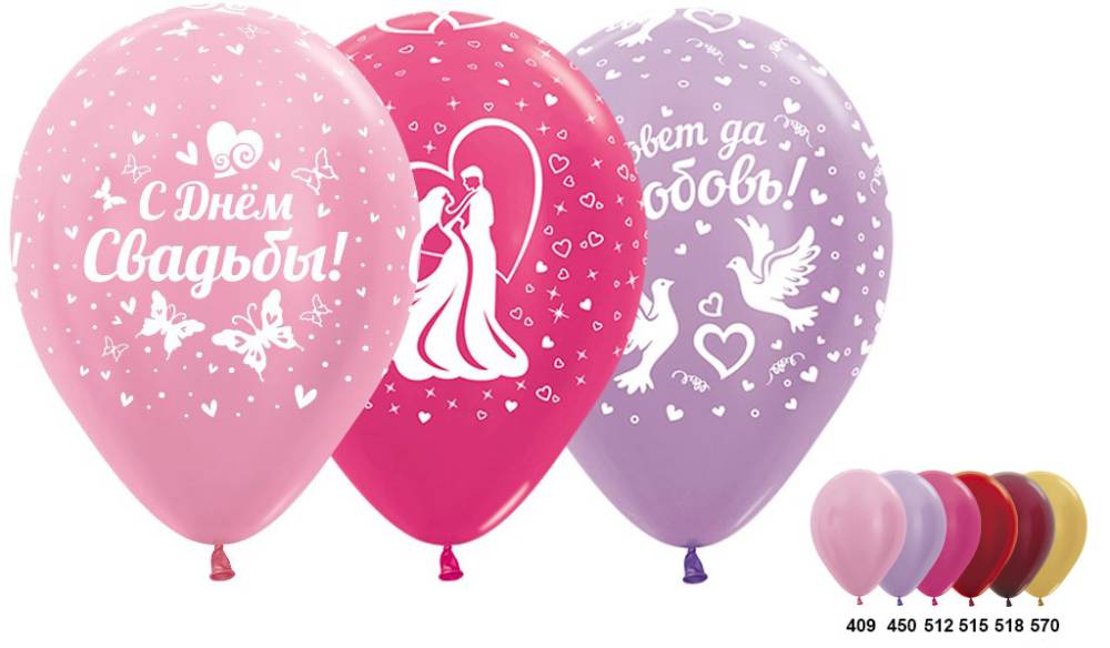 С Днем Свадьбы (3диз.) 12", металлик 50 шт. (Колумбия)