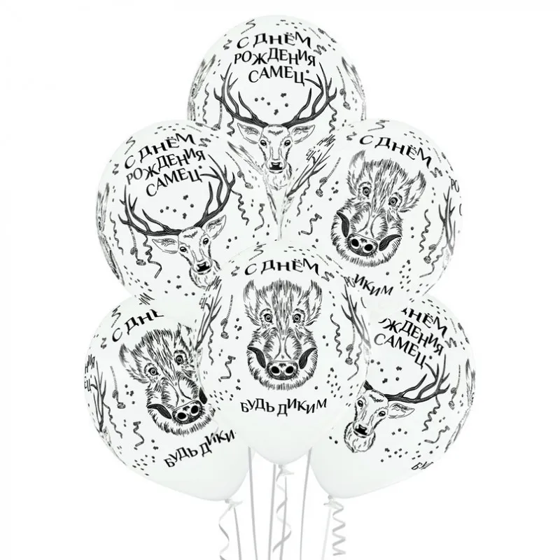 Высококачественный шар из натурального латекса. Одного типа - пастель. Белые шары с пятисторонним - круговая печать, шелкографическим шутливым рисунком С Днем рождения Самец! Будь диким! Предназначен для розничной продажи воздушных шариков и составления букетов.