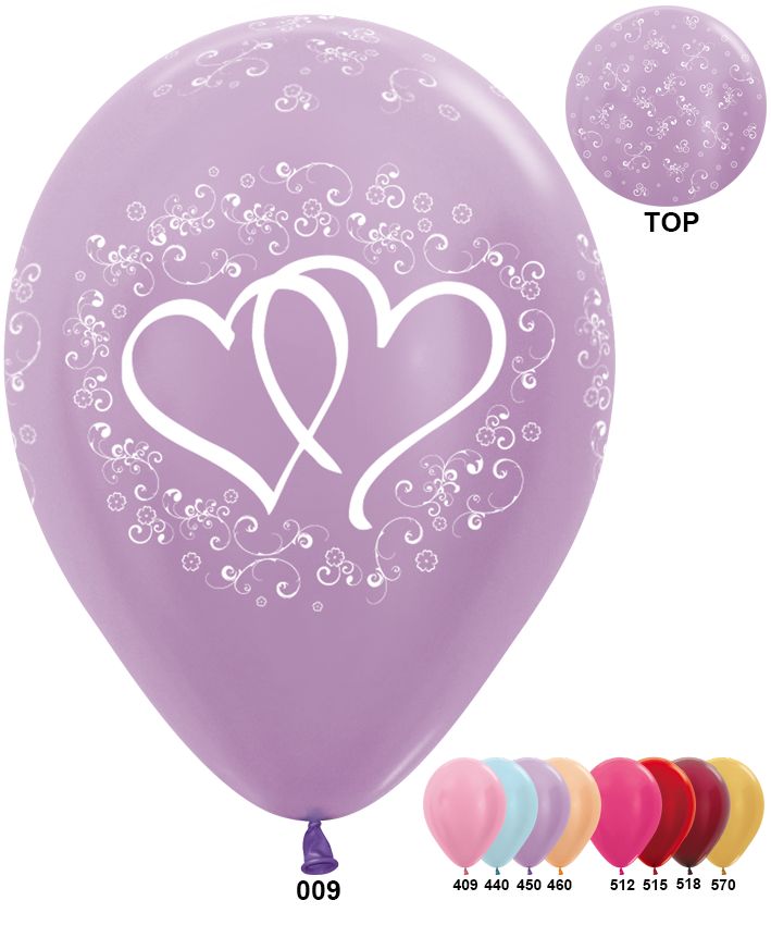 Свадебные сердца 12", металл-перл. (Колумбия)