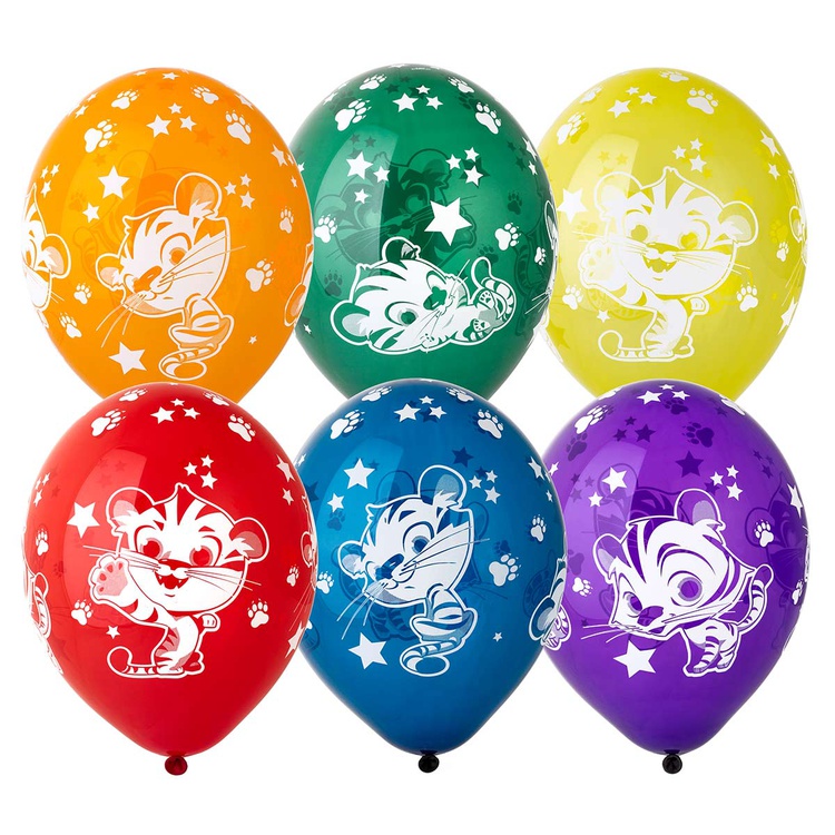 Высококачественный шар из натурального латекса, прозрачный кристалл. Шары с пятисторонним - круговая печать, шелкографическим рисунком Тигренок. Предназначен для розничной продажи воздушных шариков. Ассорти ярких цветов. Воздушные шары изготавливаются из экологически безопасного 100%-ного натурального латекса. В окружающей среде разлагаются на безопасные компоненты примерно с той-же скоростью, как обычные листья деревьев. После использования лопнуть и утилизировать как бытовой отход