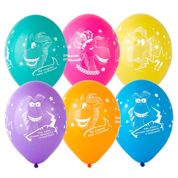 Высококачественный шар из натурального латекса. Ассорти из нескольких цветов в случайном соотношении), одного типа - пастель - матовый оттенок цвета. Шары с четырехсторонним - круговая печать, шелкографическим рисунком на тему мультфильма Три Богатыря. Конь. Предназначен для розничной продажи воздушных шариков. Идеальный ассортимент для праздничных оформлений, т.к. при плетении из него гирлянд - рисунок будет очень хорошо виден. Воздушные шары изготавливаются из экологически безопасного 100%-ного натурального латекса. В окружающей среде разлагаются на безопасные компоненты примерно с той-же скоростью, как обычные листья деревьев. После использования лопнуть и утилизировать как бытовой отход.