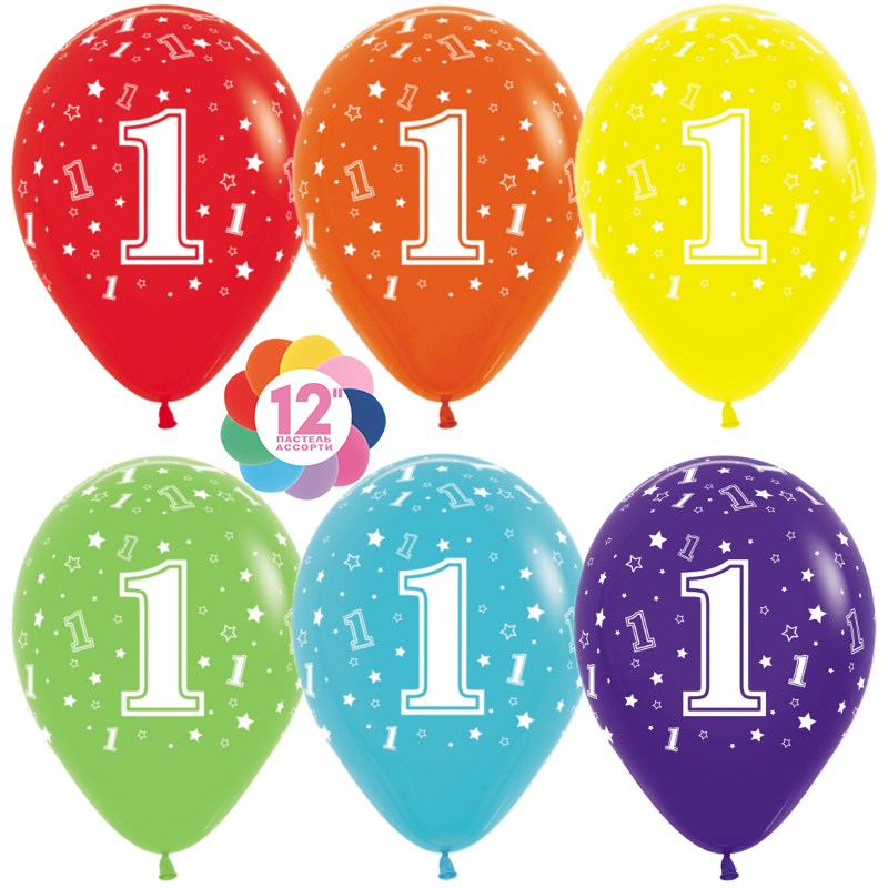 Цветовая палитра набора Цифра «1» Звезды состоит из следующих цветов: розовый, красный, оранжевый, жёлтый, зелёный, голубой, синий, фиолетовый.